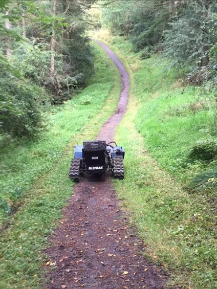 Deltrak tracks at 10km/h and for really steep slopes, studs can be fitted to provide extra grip. All the controls are incorporated on the remote: start; throttle; forward and reverse; lift and lower of the head (top-of-the-range model); cutter engagement and stop.