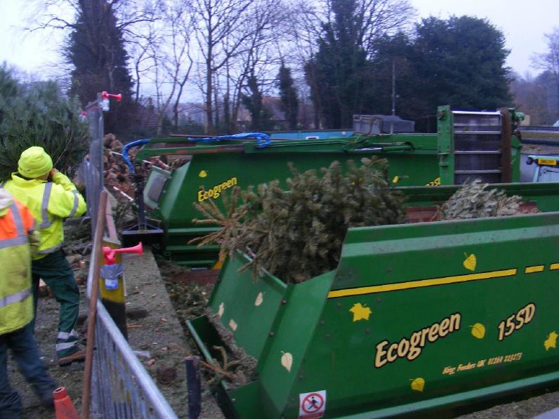 Two complimentary Eco Green Shredders have been provided by King Feeders UK, based in Macclesfield, for the two day process. The shredders quickly and effortlessly processed approximately eight thousand Christmas trees into a good compostable mulch.