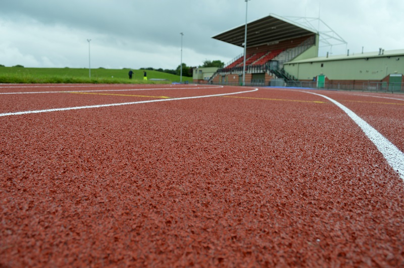 “The new sandwich system comprises a rubber base mat laid on to the existing macadam sub-base with polyurethane and red rubber crumb top surface, all to meet current IAAF specifications,” explained David Fearn, a world specialist on synthetic sports surfaces and newly appointed CLS Sports Contract Manager.