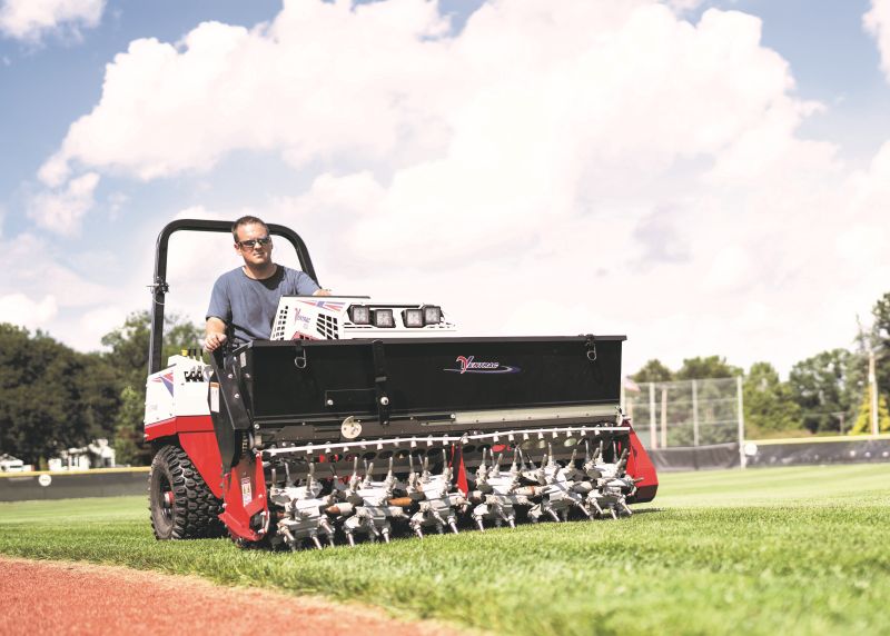 There will be three of the 4520 tractor units showcasing an Aeravator and over seeding box combination, a triplex cylinder mower attachment and a front mounted bucket with rear mounted fertilizer spreader.